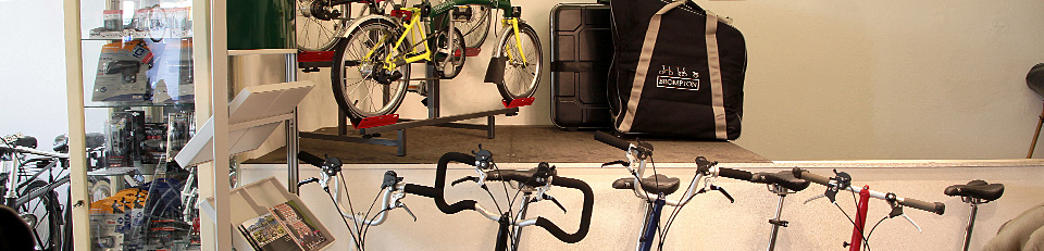 Man liebt sie, oder nicht. Das Brompton ist eben ein typisch britisches Produkt. Ausgereift, praktisch, aber in einigen Details etwas verschroben. Auf den ersten Blick unlogisch, funktioniert aber trotzdem prima. Die Falttechnik eines Bromptons sollte man lernen. Macht man es falsch, führt man einen Slapstick auf und alle haben etwas zu lachen. Macht man es dagegen richtig, belohnt einen das Brompton schnell mit extrem kleinem Packmaß in einem stabilem Paket, von dem sich nichts lösen kann. Das Brompton Zubehör ist zweckmäßig und genau auf die Benutzung des Rades für Bahn oder Bus, für Alltag oder Reisen, zugeschnitten. Ich habe normalerweise ca. 10 verschiedene Modelle von Brompton hier vorrätig (meist auch ein Titan Modell und Sondermodelle) und zeige das komplette Zubehörprogramm an den Taschen die man ans Brompton anhängt wie auch an den Taschen in die man das Brompton reinpackt. Ersatzteile sind entweder da, oder schnell besorgt ( Ausnahmen sind möglich, aber selten ). Ich werde bei Brompton zwar „nur“ als Premium Händler geführt, der einzige Unterschied zum Excellence Händler wäre aber das Brompton Shop in Shop System. Ich habe es nicht. Meine Räder stehen also nicht in dem Regal von Brompton, sondern in einem anderen. Wem das wichtig ist...