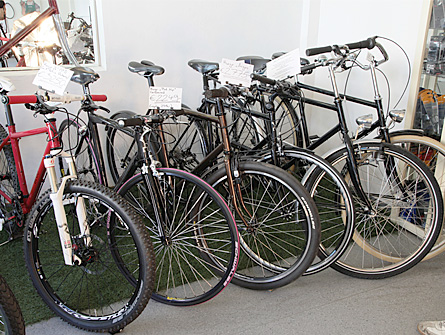 Die Tern Räder sind gefaltet zwar größer als das Brompton, haben aber dafür grundsätzlich größere Räder und fahren dadurch auf Schotter etwas ruhiger. Für Tern Räder bin ich Depot Händler, das heißt, dass ständig 15 bis 20 verschiedene Modelle vorhanden sind.